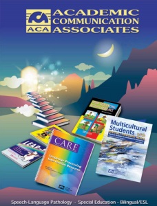 The 6th edition of this popular resource by Celeste Roseberry-McKibbin includes over 500 pages of practical information related to working with culturally diverse populations with special needs. Academic Communication Associates, Inc. Copyright © 2024 Academic Communication Associates, Inc. Academic Communication Associates Welcome to the ACA Speech, Language, and Special Education Catalog! Our publications are used throughout the world by speech-language pathologists, special education teachers, and others who work with individuals who have communication disorders, learning disabilities and other special needs. Many of our products are designed specifically for use with students from bilingual/multicultural backgrounds. Academic Communication Associates Many of our publications are now available in a digital (CD) format. The CD editions make it easy to print out reproducible pages as you need them. Products can also be downloaded from our website. Most books on CD can also be downloaded from acawebsite.com Getting product downloads is quick and easy! Easy-to-Use Books on CD 6th edition See page 65 See page 72 CD Supplement for Spanish Articulation Measures Bilingual/Multicultural Resources VIEW or DOWNLOAD our most recent catalog at this special link: acacatalog.com Our flip-page catalogs are now easy to view on computers or mobile devices.